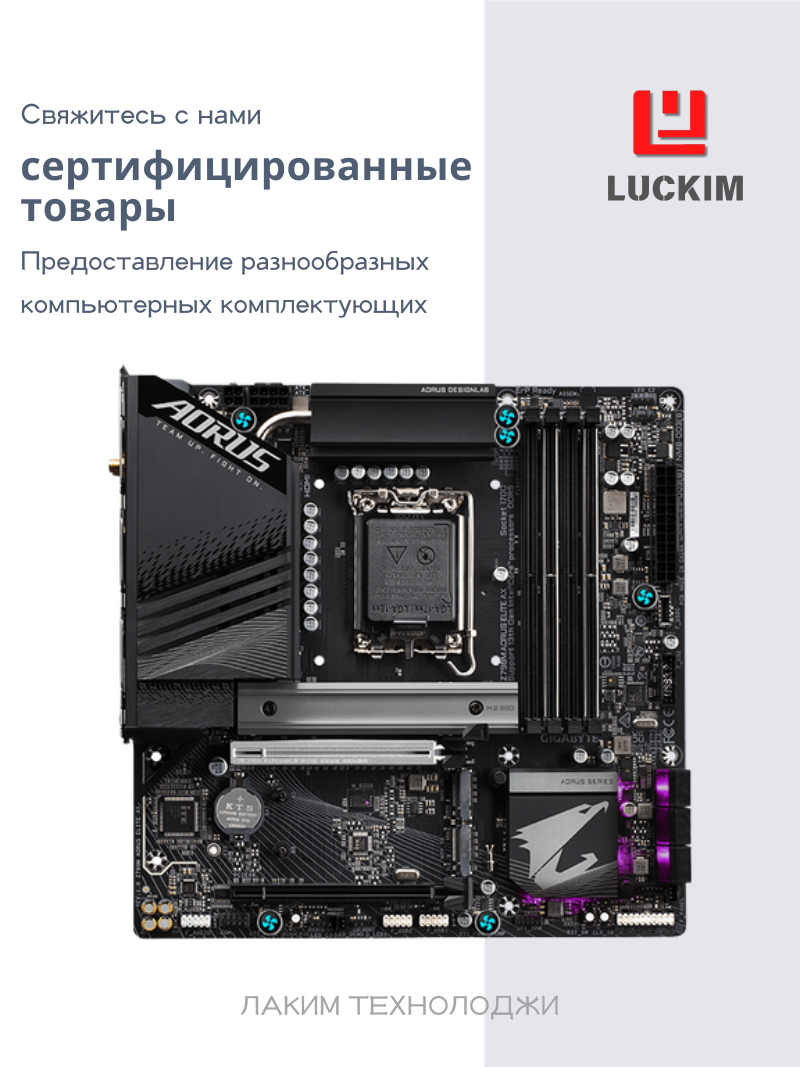 Материнская плата Gigabyte Z790M AORUS ELITE AX Socket LGA 1700 чипсет Z790 поддержка DDR5 до 7600МГц 4 слота памяти 6 SATA, Wi-Fi 6E, 2.5GbE LAN.