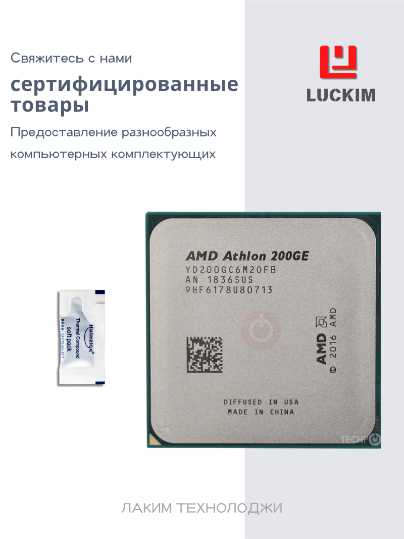 CPU AMD Athlon 200GE - Socket AM4 2 ядра 4 потока 3.2ГГц 192МБ кэша L3 35W.
