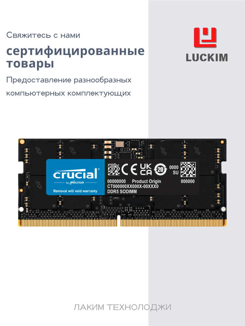 Оперативная память CRUCIAL Laptop DDR5 32ГБ 4800МГц 1.1V CL40 288 пинов dual 38400 МБ/с.